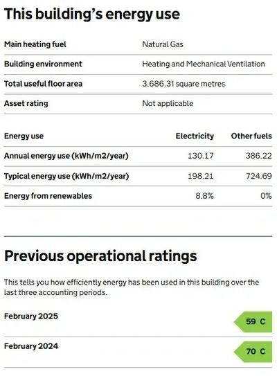 A Display Energy Certificate shows the actual energy usage of a building (based on metered consumption), rather than theoretical efficiency like an EPC. It's intended to promote energy efficiency in public buildings.